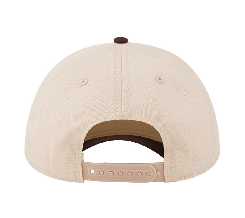 Design: Smooth brown and white contrast with a clean logo hit — paired with a pre-curved bill and 8 rows of detailed stitching for a refined, stylish finish.